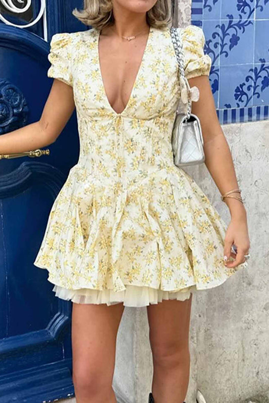 AS | Evropské a americké nové 2023 český styl nové popruh dlouhé šaty s vysokým pasem V-Neck tištěné roztříštěné květinové šaty ženy Wea
