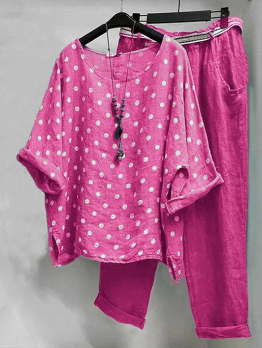 AS | Ležérní halenka s kulatým výstřihem s puntíky a kalhoty s kapsami v balení po 2 kusech