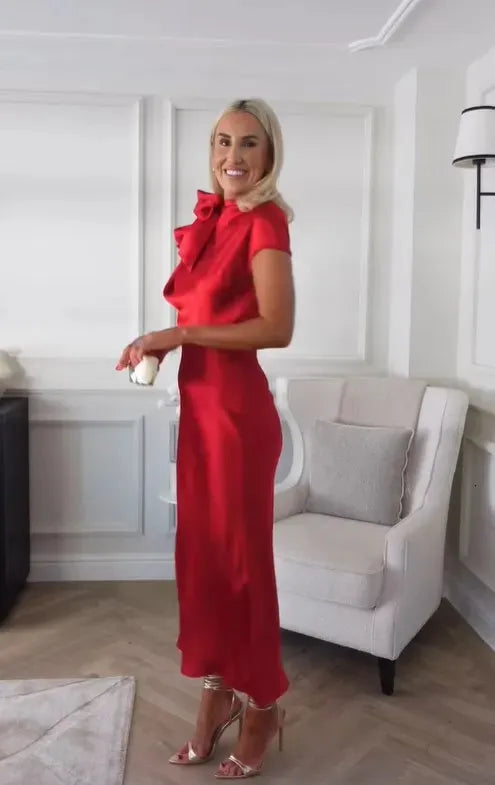 AS | Maxi šaty s krátkými rukávy a vázaným výstřihem