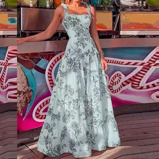 AS | Maxi šaty s květinovým potiskem a kulatým výstřihem