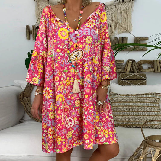 AS | Plus velikost šaty jaro a léto nový styl šaty evropské a americké motýlí tisk taška kolem krku vesta A-line šaty