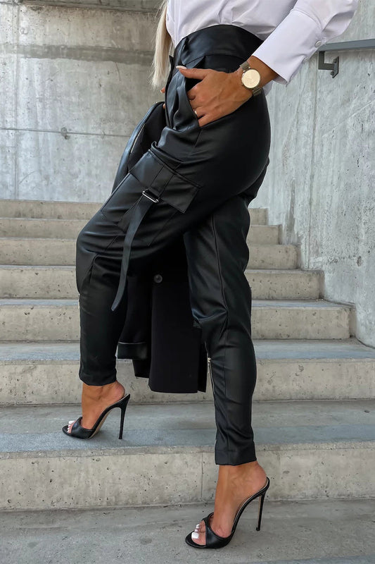 AS | Příležitostné pevné kapsy zip pravidelné vysoký pas tužka kalhoty (5 barev)