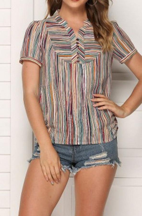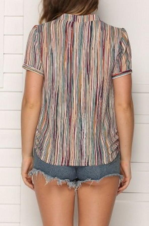AS | Pruhovaný maskáčový top v zelené barvě s volným výstřihem do V