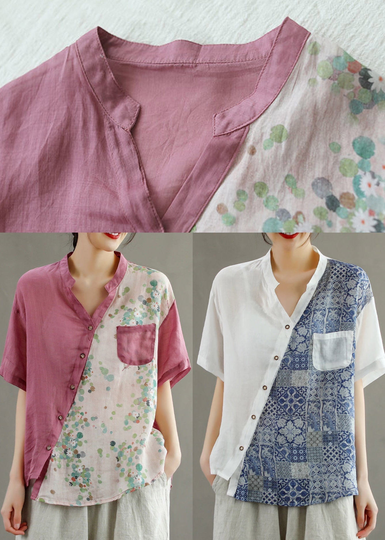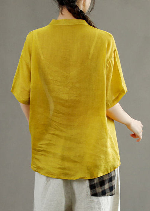 AS | Ženy žluté V-Neck asymetrické tisk halenka topy krátký rukáv