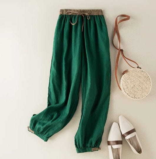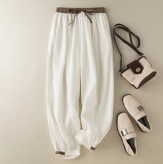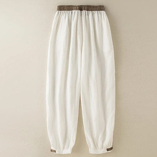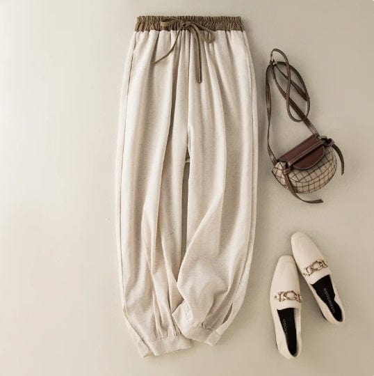 AS | Bavlněné a lněné harémové kalhoty se šňůrkou, volné, elastické, s vysokým pasem a velkou velikostí