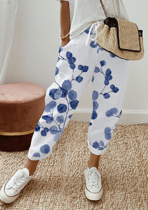 AS | Ležérní dámské kalhoty z bavlny a lnu s retro botanickým potiskem