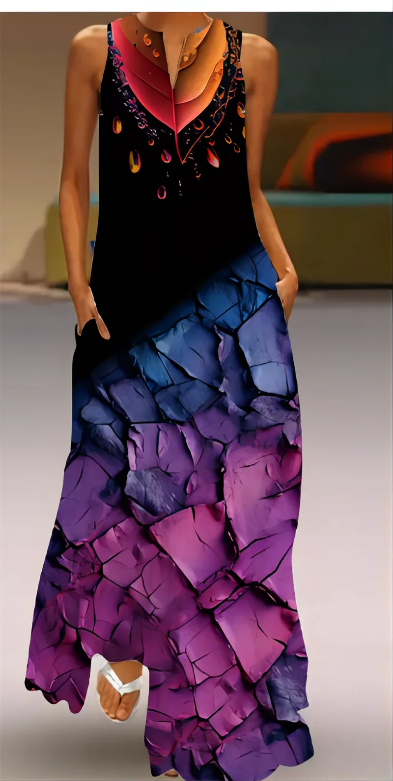 AS | Jarní letní dlouhé dámské šaty květinové bez rukávů volné tisk elegantní party šaty pro ženy 2024 příležitostné plážové šaty Maxi ženy